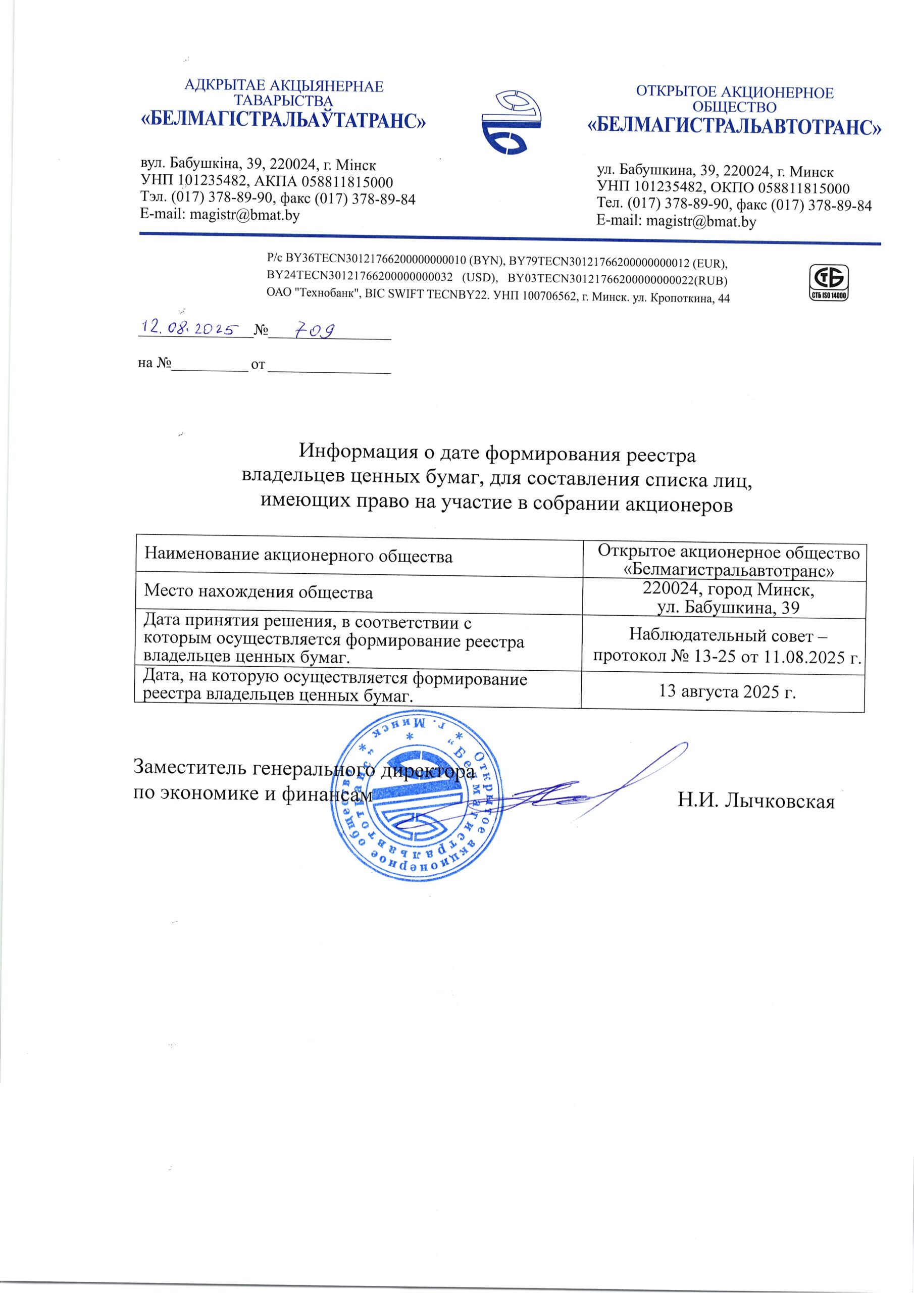 ПРОТОКОЛ № 18-25 заседания наблюдательного совета ОАО «Белмагистральавтотранс» от 20.10.2025г.